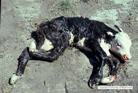 Fetal deformities develop. If severe, they typically result in stillbirth, with limbs locked in extension or flexion. Survivors often exhibit central nervous system degeneration and muscle lesions secondary to prolonged recumbency. Torticollis, scoliosis (spinal deviation), kyphosis (hunchback), and arthrogryposis (outward deformation of the thorax and spine) may be present concurrently. CNS lesions manifest as blindness, nystagmus (abnormal eye movements), deafness, depression, slow feeding, paralysis, and incoordination. Arthrogryposis and hydranencephaly, either alone or in combination, are present in fetuses and newborns. These lesions are associated with damage to the innervation of muscles stimulated by the CNS.